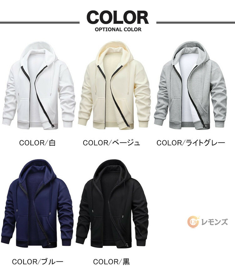ジップパーカー メンズ 無地パーカー メンズファッション 新登場! M L XL 2XL 3XL 4XL 白 ベージュ ライトグレー ブルー 黒