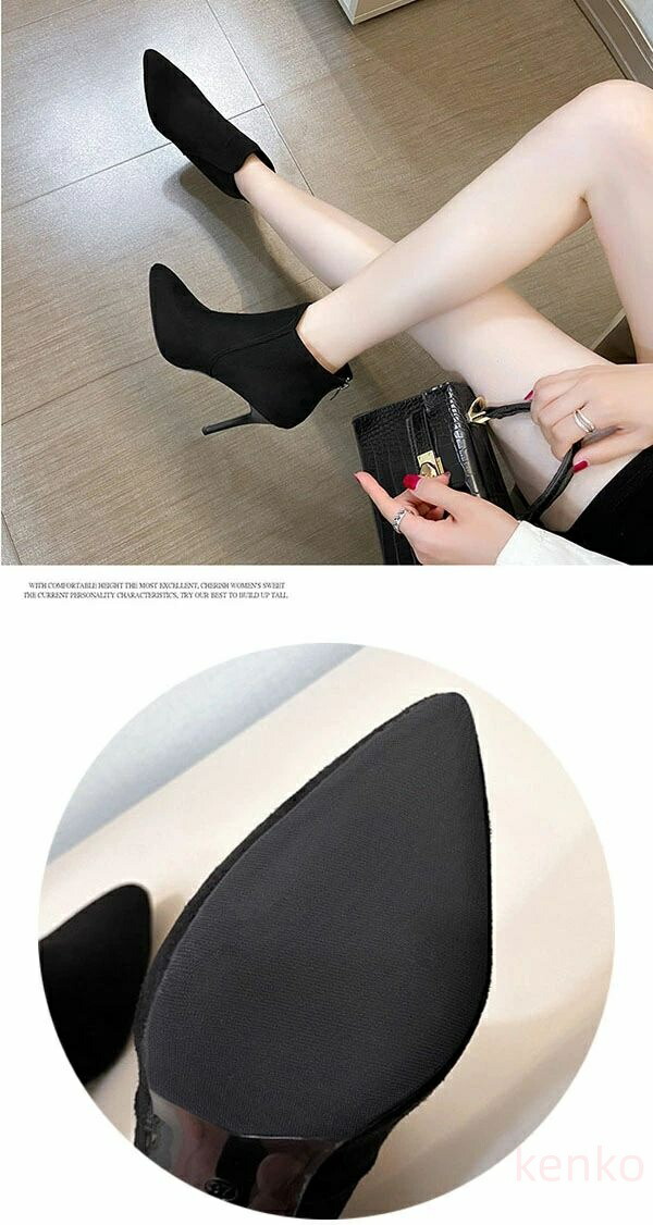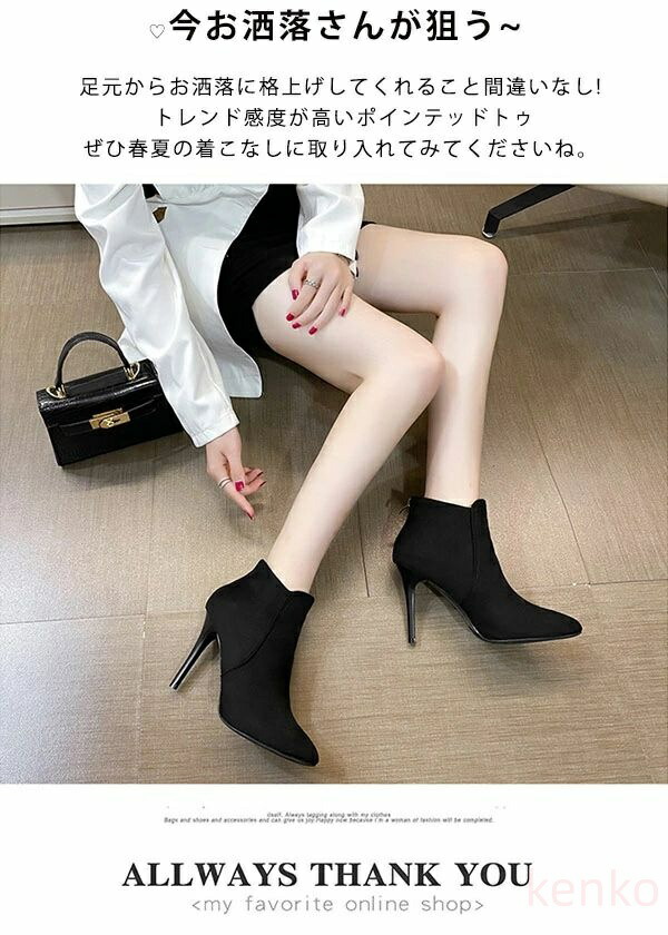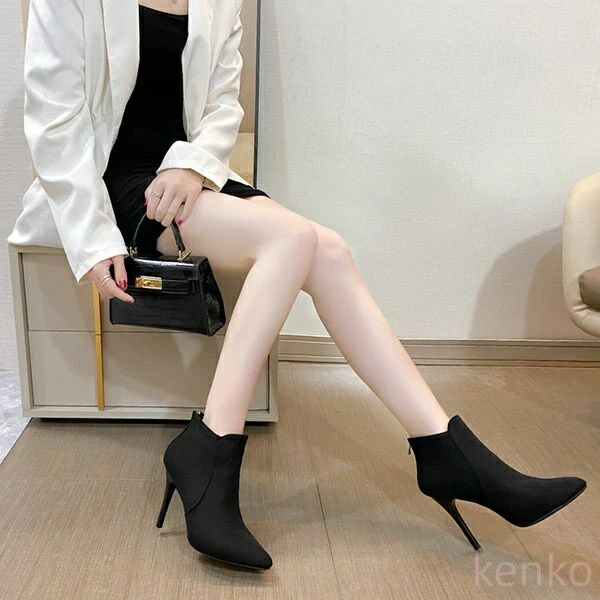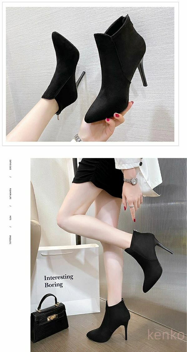 ショートブーツ ブーツ レディース 秋冬 ヒール ハイヒール ヒール10cm 美脚 疲れない 安定感 歩きやすい 裏起毛 おしゃれ 黒 ポインテッドトゥ