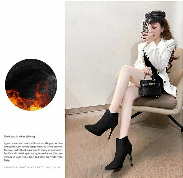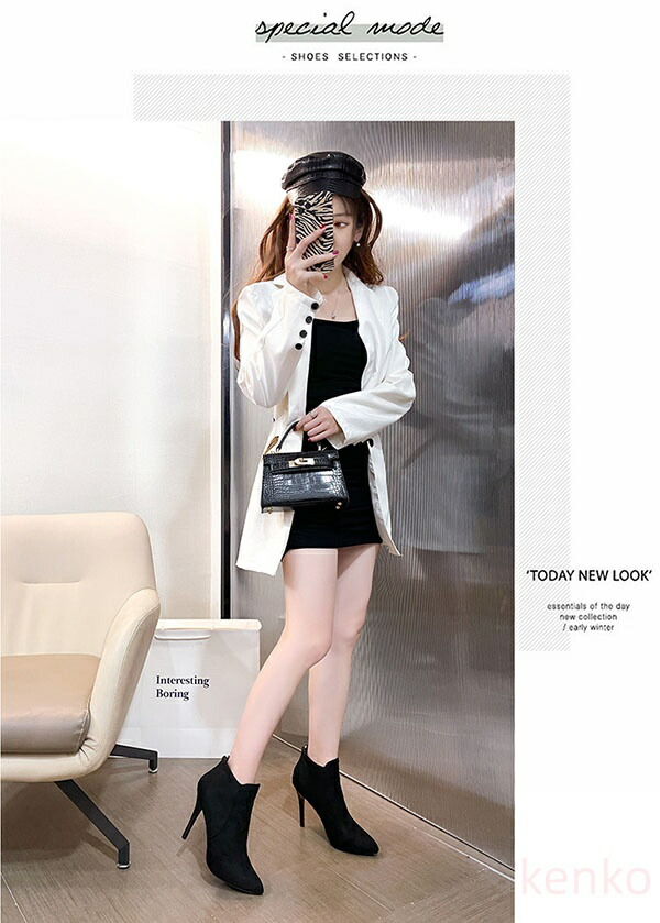 スラッと細く長い足に見せてくれる高さ10cmのハイヒール。 高いヒールでグッとスタイル良く見せてくれるオシャレなブーティです。