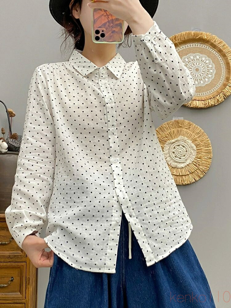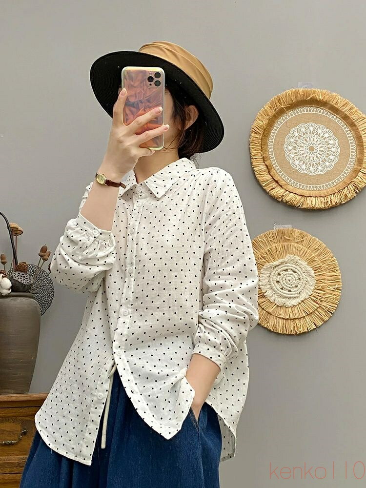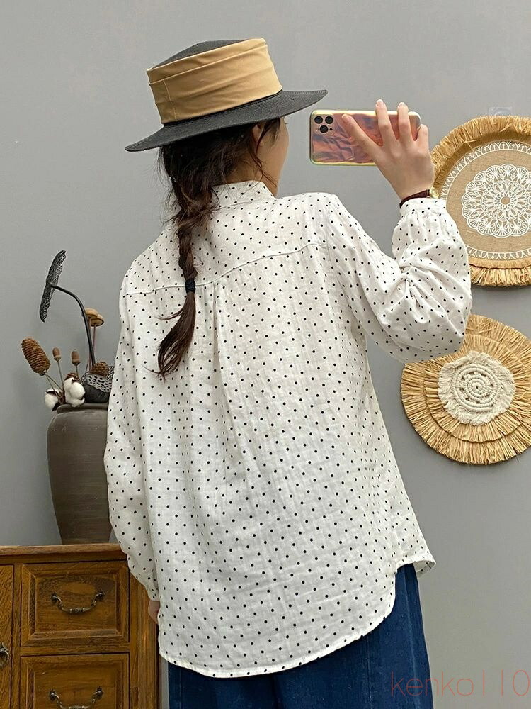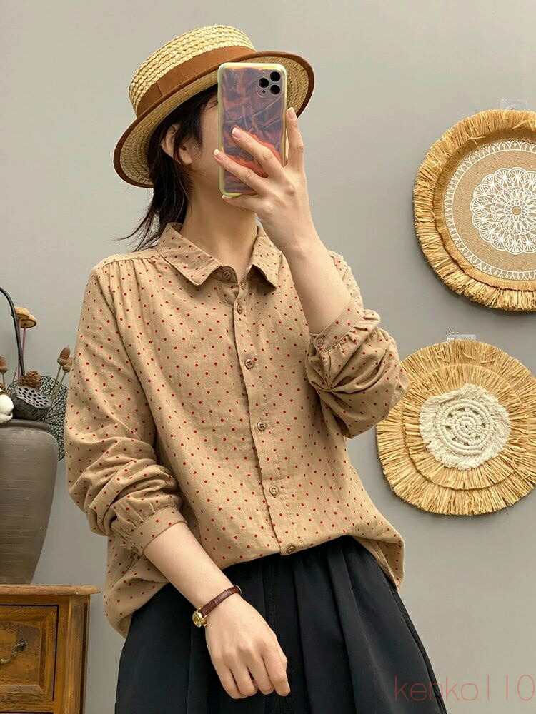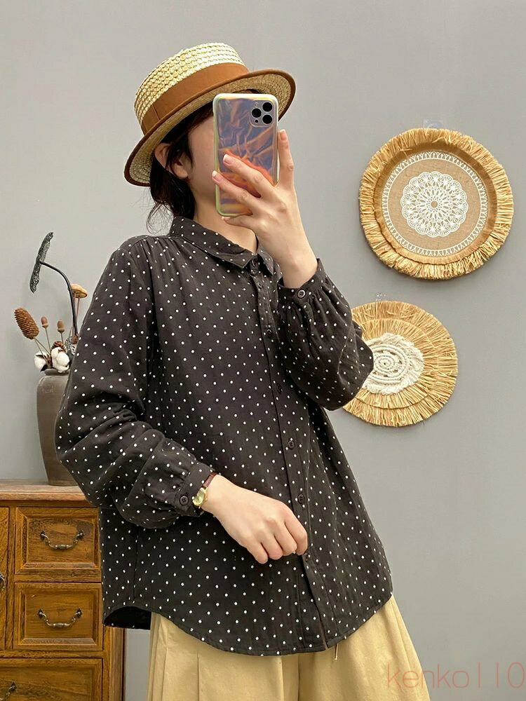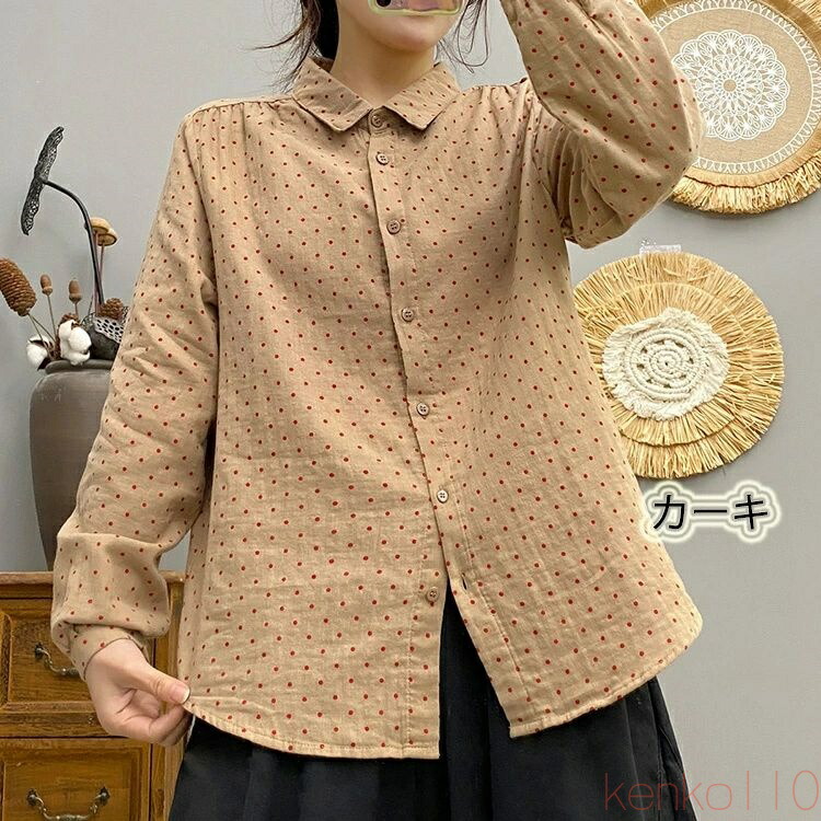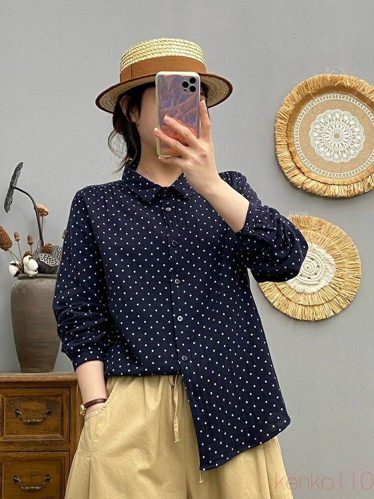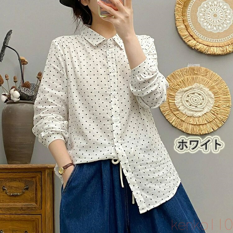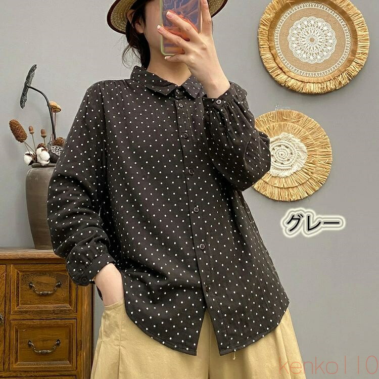 ドット柄 シャツ シャツブラウス レデ トップス シャツ ブラウス 超目玉商品 ホワイト カーキ グレー 紺色 S M L