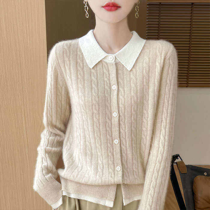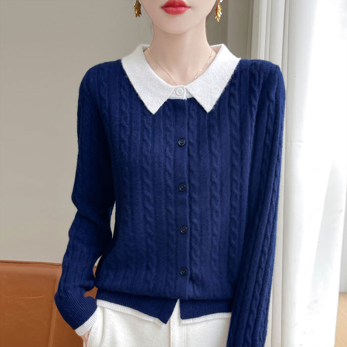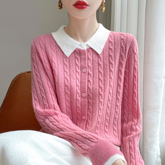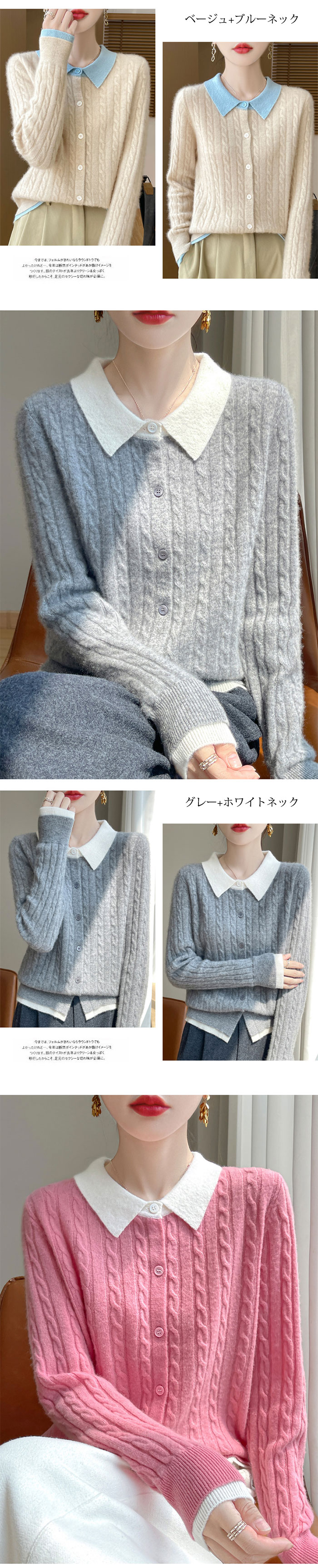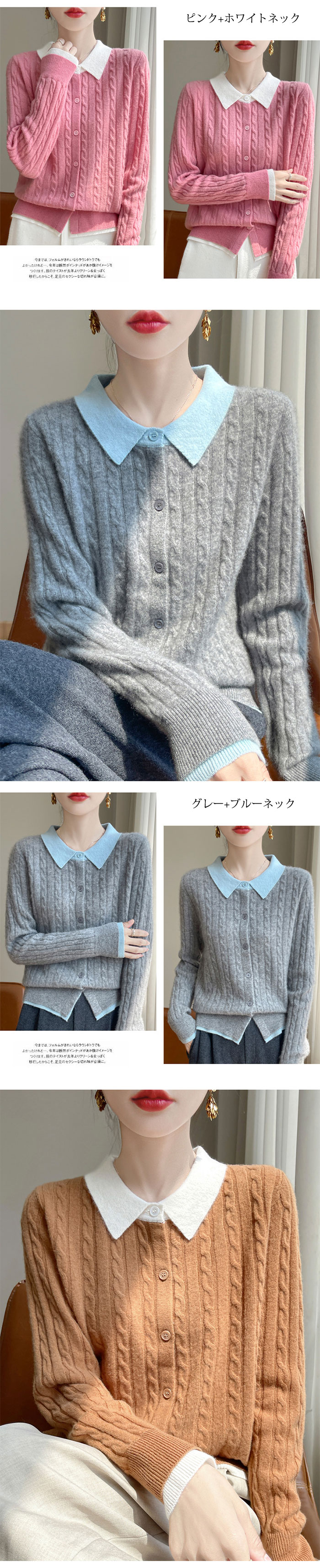 襟付き ニット レディース カーディガ レディースファッション 豊富 パープル ブラック ベージュ グリーン カーキ レッド ブルー B ベージュ+ホワイトネック B ピンク+ホワイトネック B ベージュ+ブルーネック B カーキ+ホワイトネック B グレー+ブルーネック B コーヒー+ホワイトネック B グレー+ホワイトネック B ホワイト+ピンクネック B ネイビー+ホワイトネック S M L XL 2XL