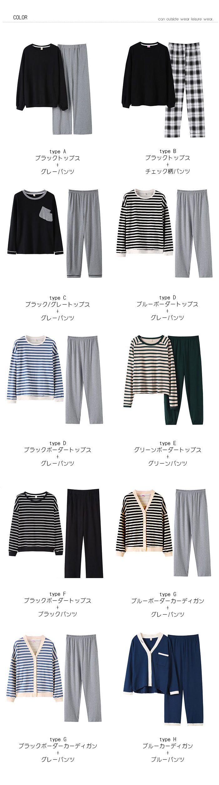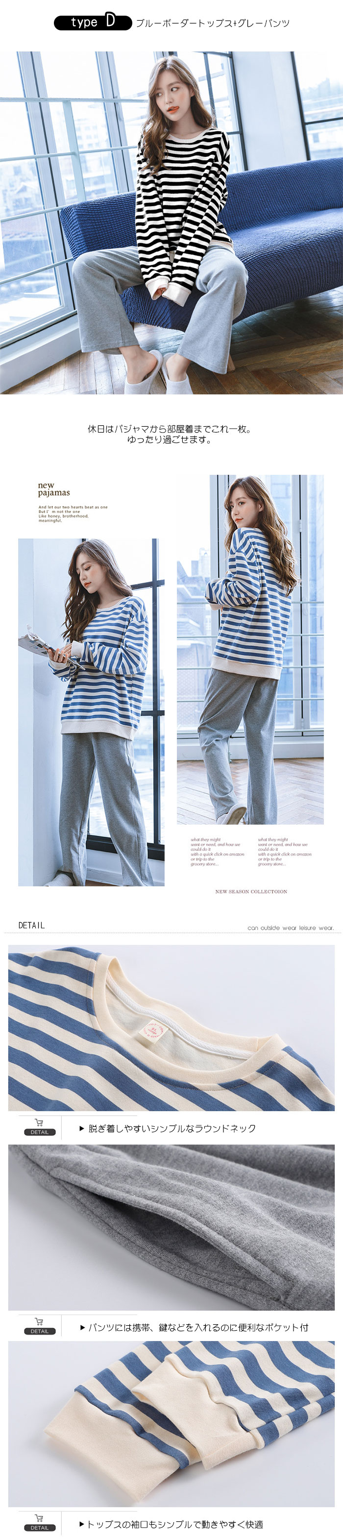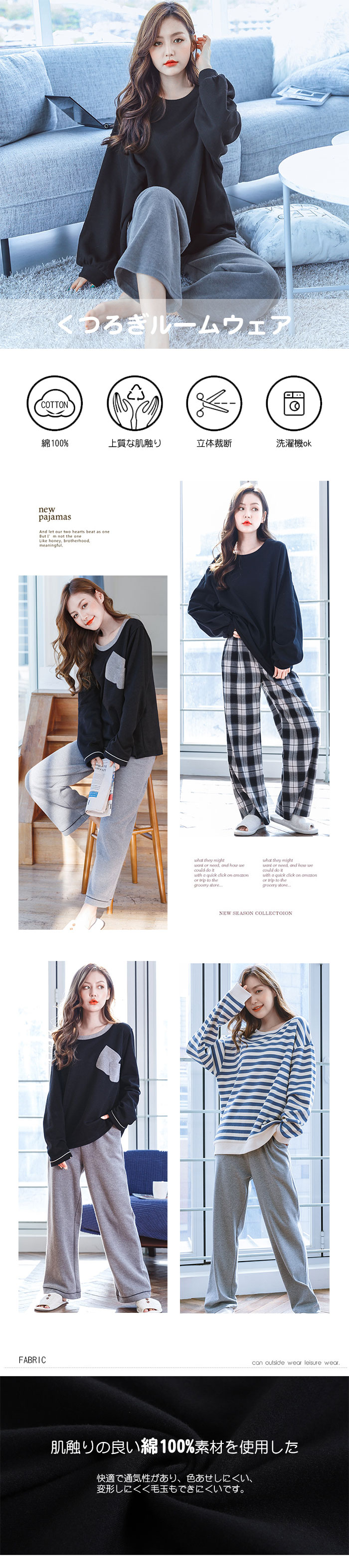 ルームウェア レディース 綿100 秋 インナー 下着 ナイトウエア 人気 Aブラックトップス+グレーパンツ Bブラック+チェック柄パンツ Cブラック/グレー+グレーパンツ Dブルーボーダー+グレーパンツ Dブラックボーダー+グレーパンツ Fブラックボーダー+ブラックパンツ Gブルーボーダー+グレー Gブラックボーダー+グレー M L XL 2XL