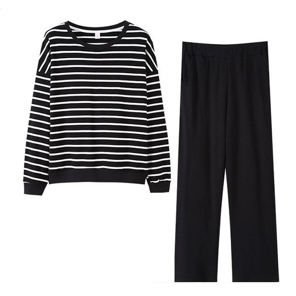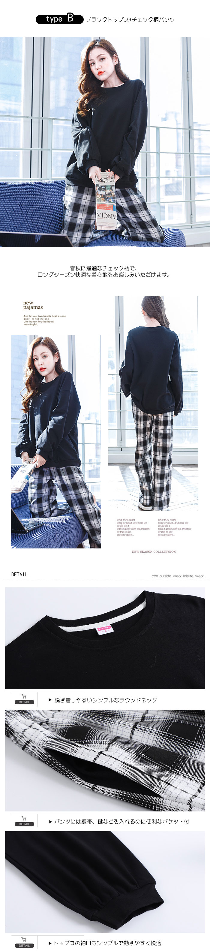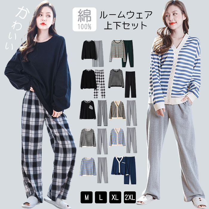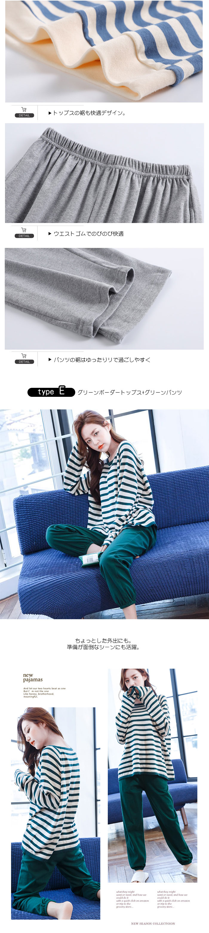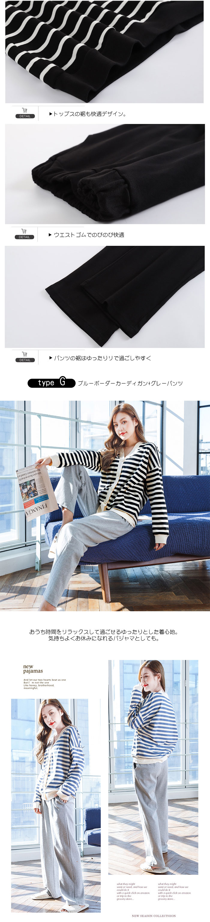 ルームウェア レディース 綿100 秋 インナー 下着 ナイトウエア 人気 Aブラックトップス+グレーパンツ Bブラック+チェック柄パンツ Cブラック/グレー+グレーパンツ Dブルーボーダー+グレーパンツ Dブラックボーダー+グレーパンツ Fブラックボーダー+ブラックパンツ Gブルーボーダー+グレー Gブラックボーダー+グレー M L XL 2XL