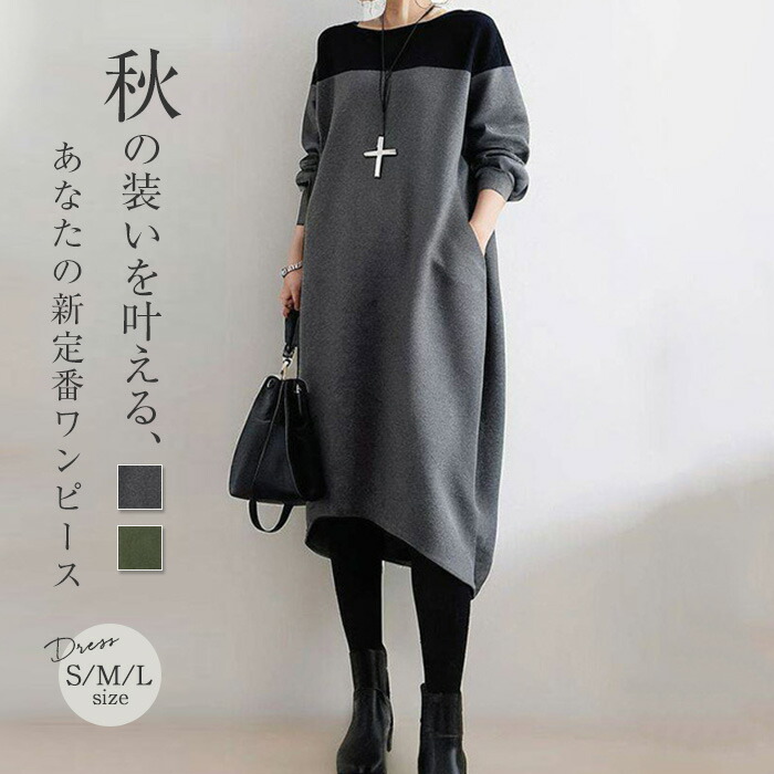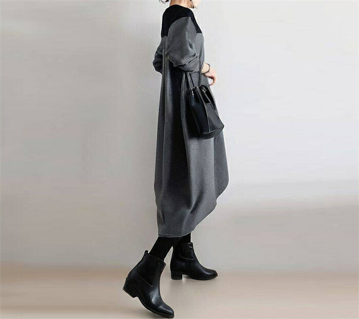 ワンピース ロング レディース コクー レディースファッション 超目玉商品 グレー カーキグリーン S M L