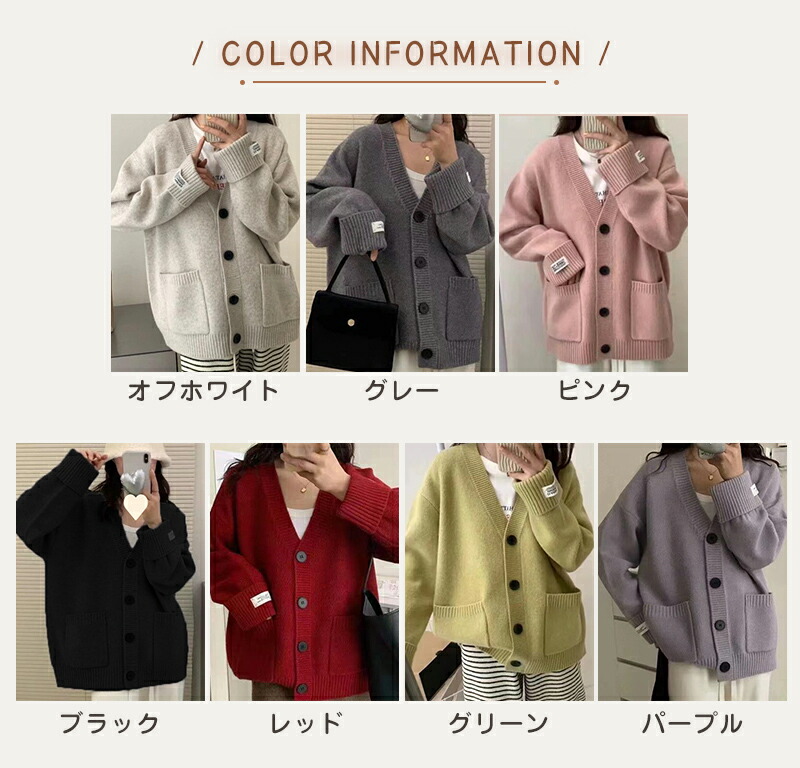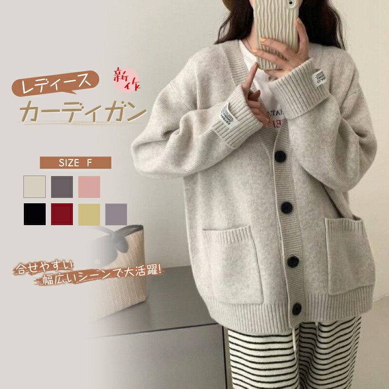 ニットカーディガン レディース ニット レディースファッション 続々入荷中 オフホワイト グレー ピンク ブラック レッド グリーン パープル