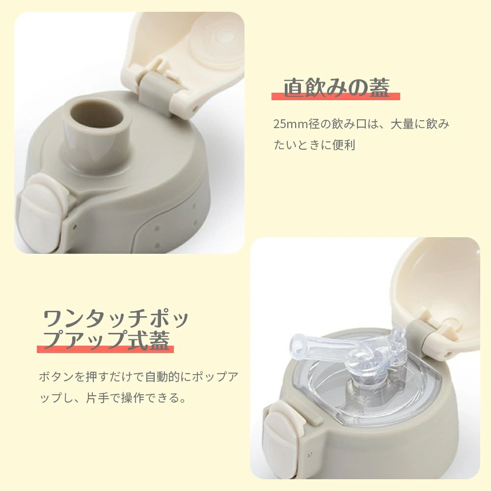 【3WAYタイプのボトル】直飲みもOK、冷たい飲み物がそのまま飲めます。直飲みもコップ飲みもストロー飲みできる3WAYタイプのボトルです。ワンタッチオープンタイプで温かい飲み物にも、冷たい飲み物にもお使いいただけます。飲みたい時にサッと飲める、開けてすぐ飲める直飲みタイプです。