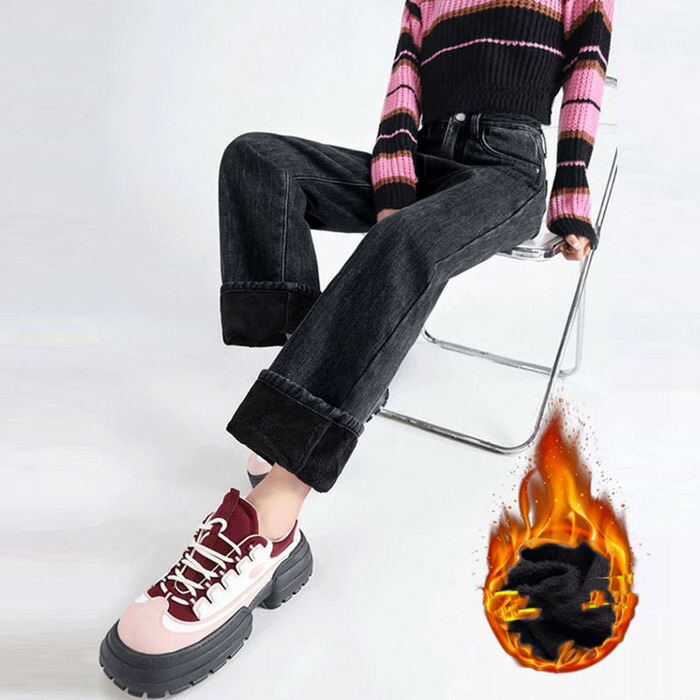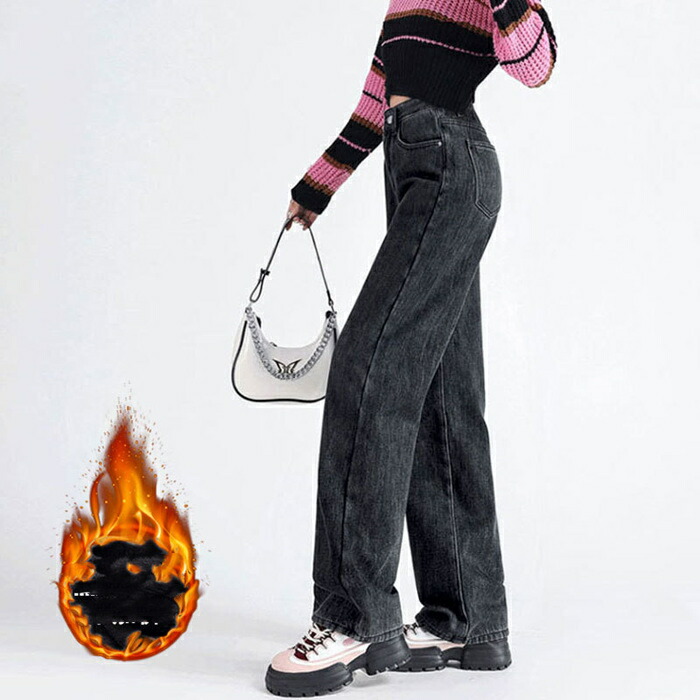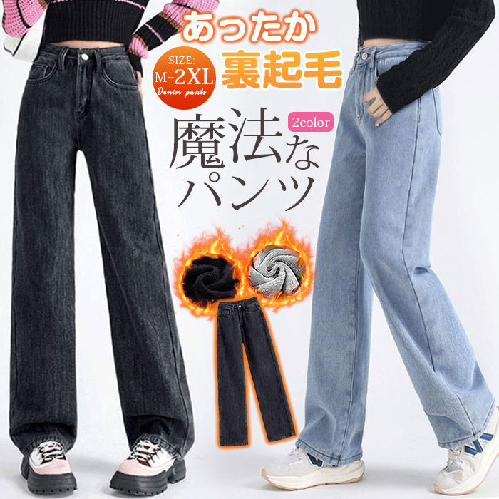 裏シャギー デニムパンツ ジーパン 防 レディースファッション 続々登場 ブラックグレー ブルー M L XL 2XL