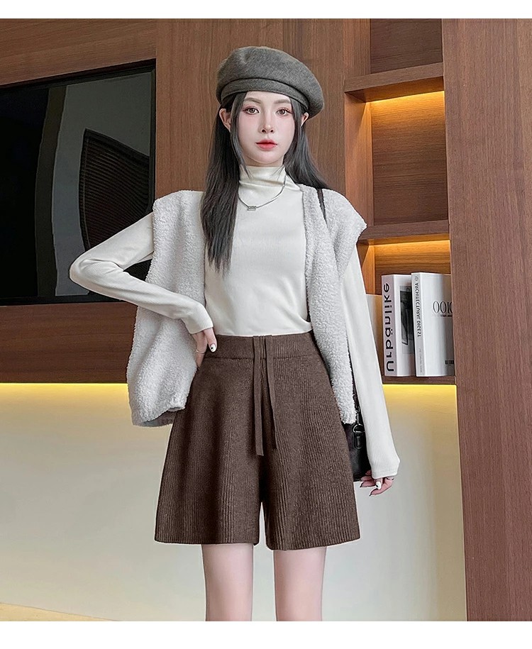 ニット ショートパンツ レディース 冬 ボトムス パンツ 続々登場 黒 グレー チョコレート色