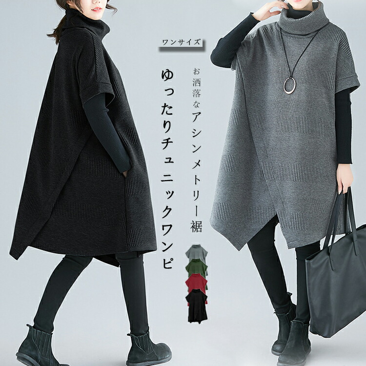 チュニック ワンピース レディース 秋 レディースファッション 新登場! ワインレッド 黒 グレー グリーン