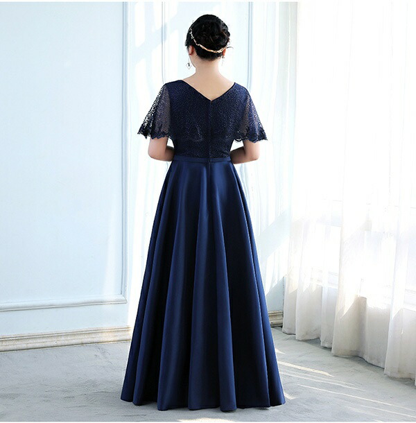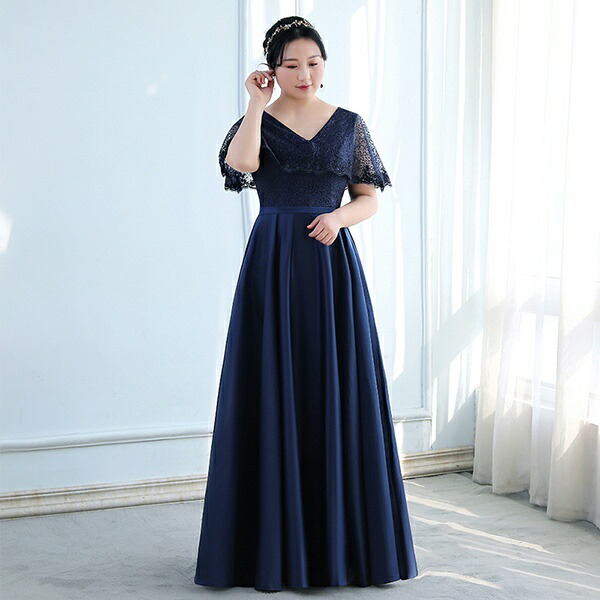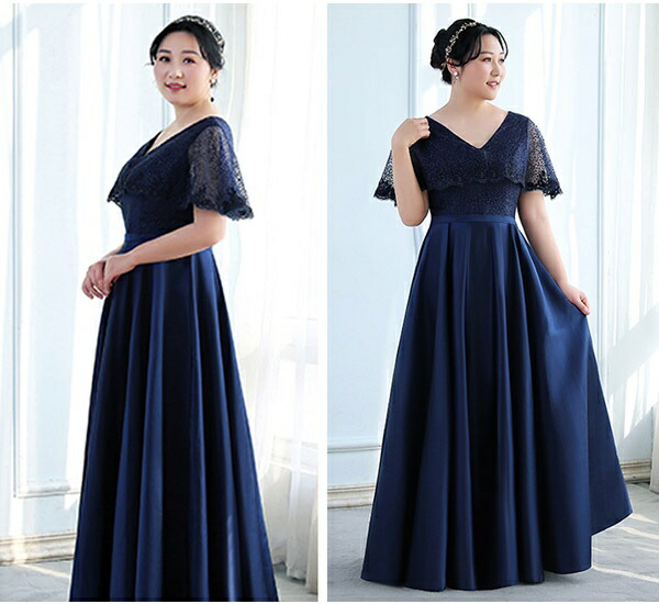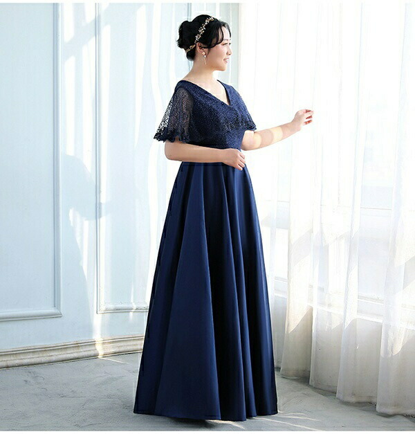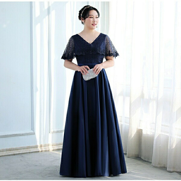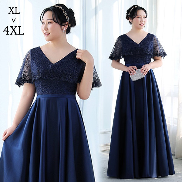 ロングドレス袖あり結婚式ネイビードレス レディースファッション 新登場! XL 2XL 3XL 4XL