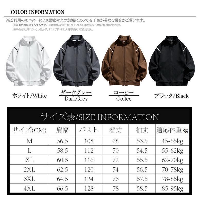 トラック メンズ ジャージ スウェット メンズファッション 新登場! ホワイト ブラック ダークグレー コーヒー M(体重45-55kg) L(体重55-62kg) XL(体重62-70kg) 2XL(体重70-78kg) 3XL(体重78-85kg) 4XL(体重85-95kg)
