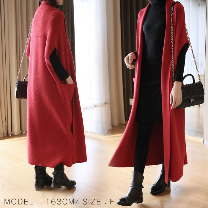 ニットジレ ロングジレ レディース ニ レディースファッション 早い者勝ち グレー ネイビー レッド ブラック M L