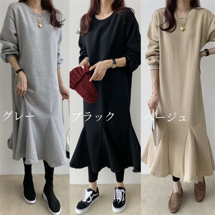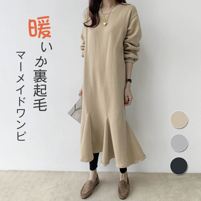 裏起毛 ワンピース レディース 秋冬 レディースファッション 超目玉商品 ブラック グレー ベージュ
