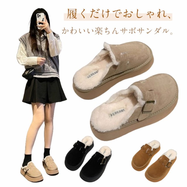 裏起毛 冬 サボサンダル 厚底 レディ 靴 新登場! グレーブラウン ブラック ブラウン 35(22.5cm) 36(23cm) 37(23.5cm) 38(24cm) 39(24.5cm) 40(25cm) 41(25.5cm)