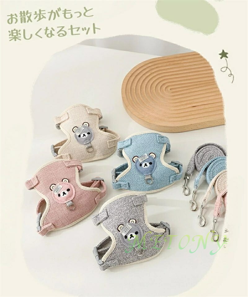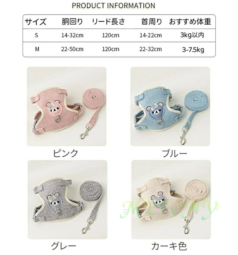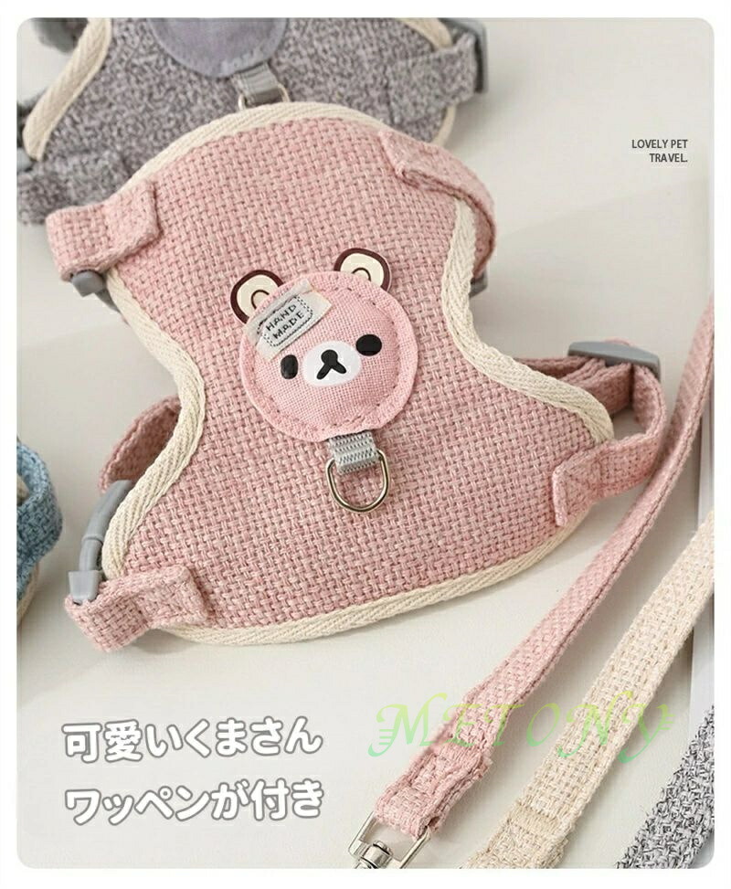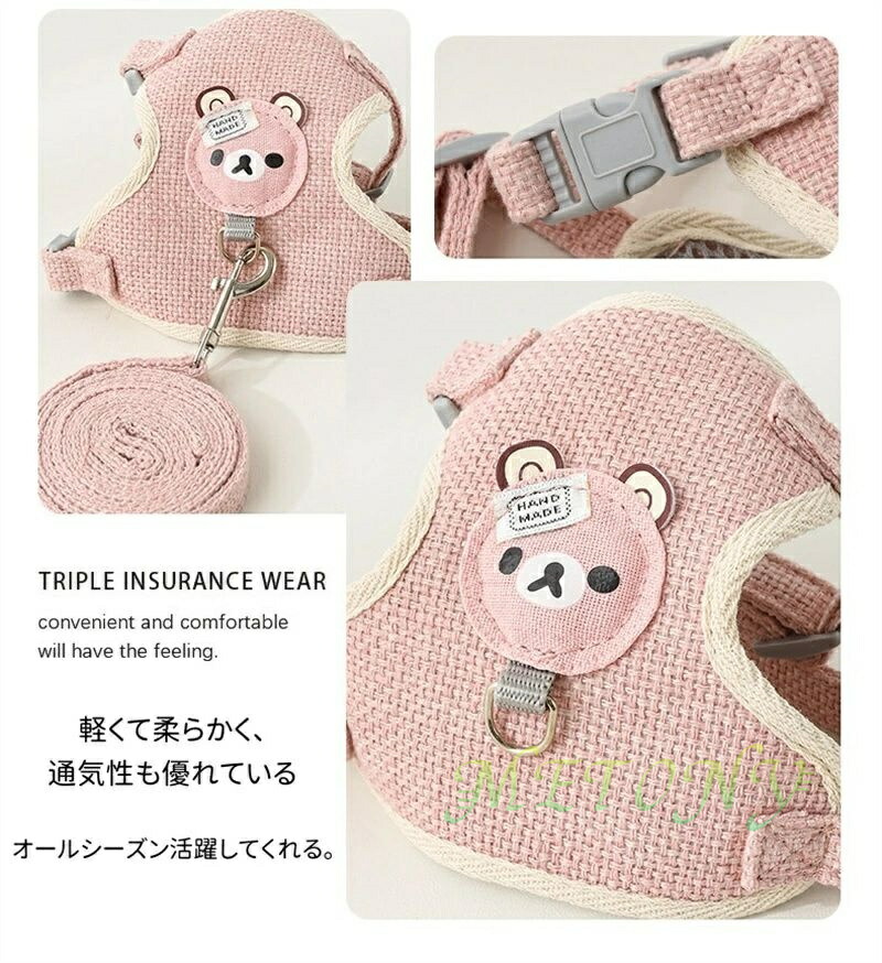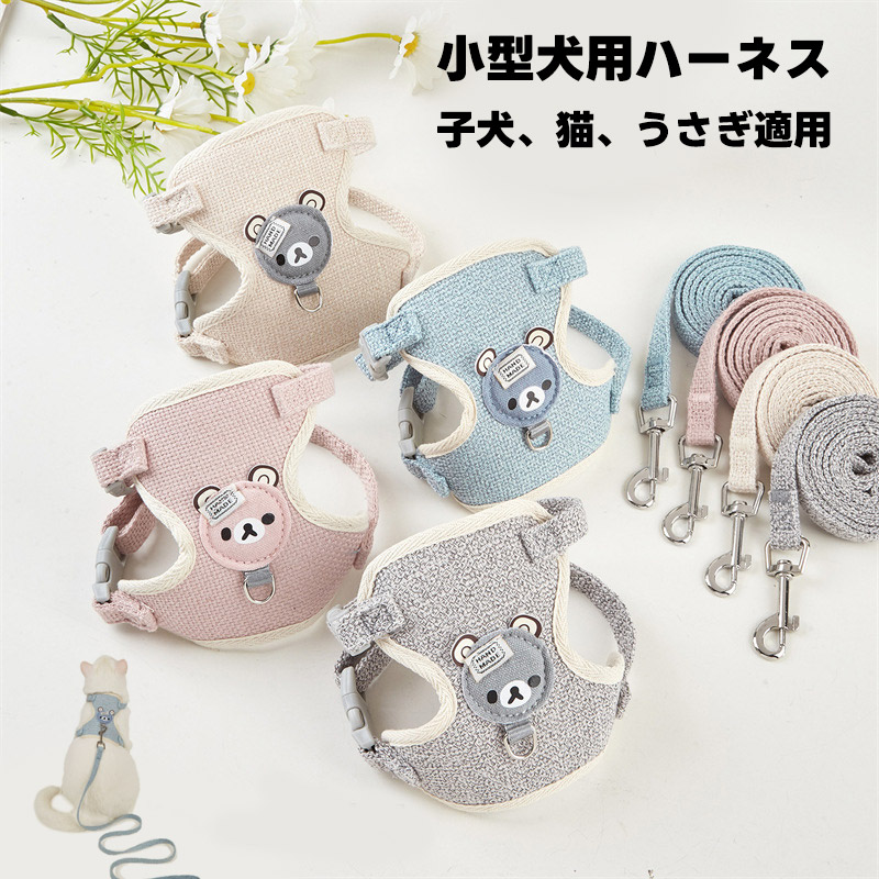 ペットハーネス リード付き 子犬用 猫 キッズ ベビー マタニティ 通販 ピンク ブルー グレー カーキ色 S(おすすめ体重1-3kg) M(おすすめ体重3-7.5kg)