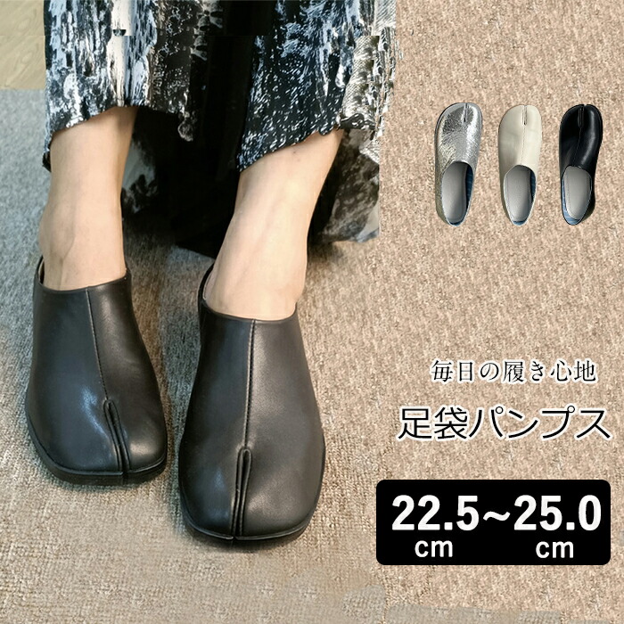 足袋パンプス タビパンプス 足袋スリッ 靴 続々登場 ブラック シルバー ベージュ 22.5cm 23.0cm 23.5cm 24.0cm 24.5cm 25.0cm