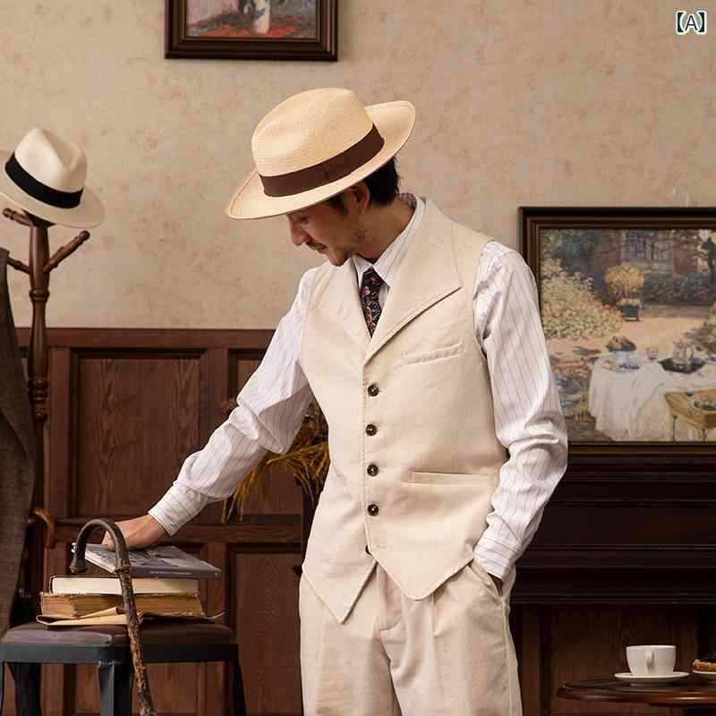 ベスト メンズ スーツ ジレ チョッキ 紳士 ファッション おしゃれ 英国 レトロ ビジネス スリム 春秋 ベージュ カジュアル