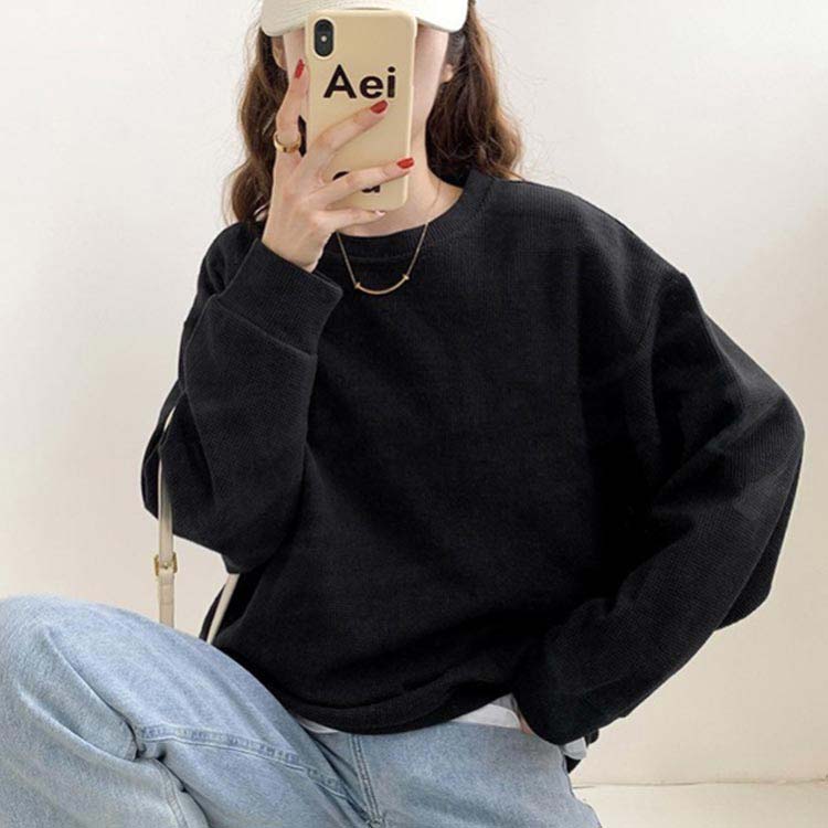ワッフル Tシャツ レディース 長袖 レディースファッション 通販 ブラック グレー ホワイト M L XL 2XL