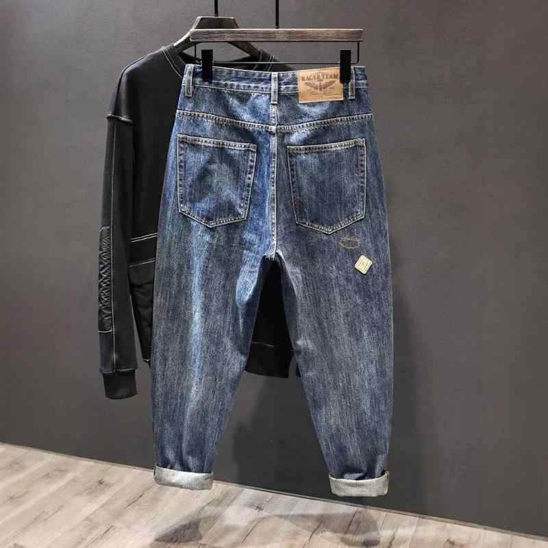デニムパンツ メンズ ゆったり ルーズフィット テーパード ジーンズ 綿素材 レトロ ヴィンテージ ストリートファッション ブルー 春夏 おしゃれ 日常使い 普段使い 男性用