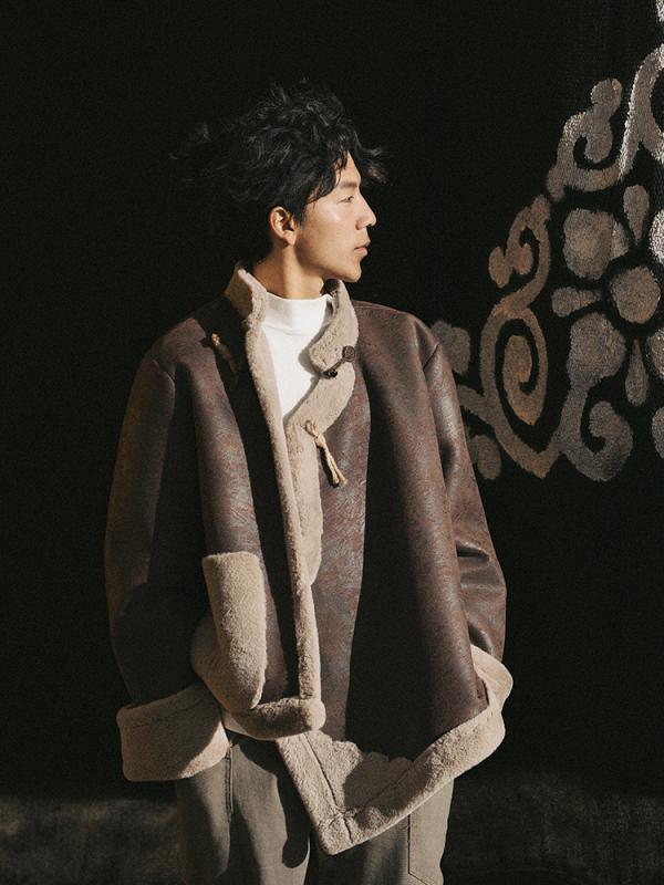 ジャケット コート アウター おしゃれ メンズ ファッション レザー スタンドカラー チベットスタイル エスニック チャイナ風 男性 大きいサイズ レトロ