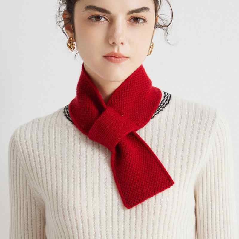 ミニマフラー レディース 女性用 100% ピュアカシミヤ 上質 防寒 保温 暖かい 凹凸編み クロスデザイン 首元あたたか オフィス 通勤 万能 秋冬