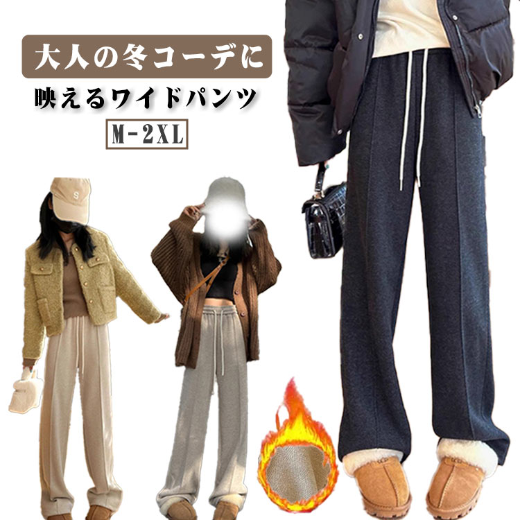 秋冬 裏起毛 パンツ ワイドパンツ レディース ロングパンツ 防寒 ウエストゴム あったか 無地 美脚 ゆったり ボトムス 大人 女性 かわいい 冷え対策 春秋 脚長効果 体型カバ 防寒着