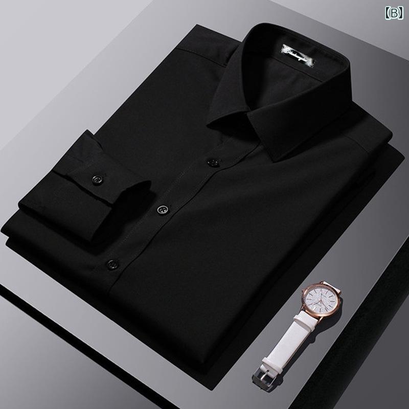 シャツ メンズ 男性用 長袖 ビジネス フォーマル トップス スリム 無地 ポリエステル ホワイト ブラック グレー ネイビー スカイブルー レッド ピンク ワインレッド S M XL 2L 3L L
