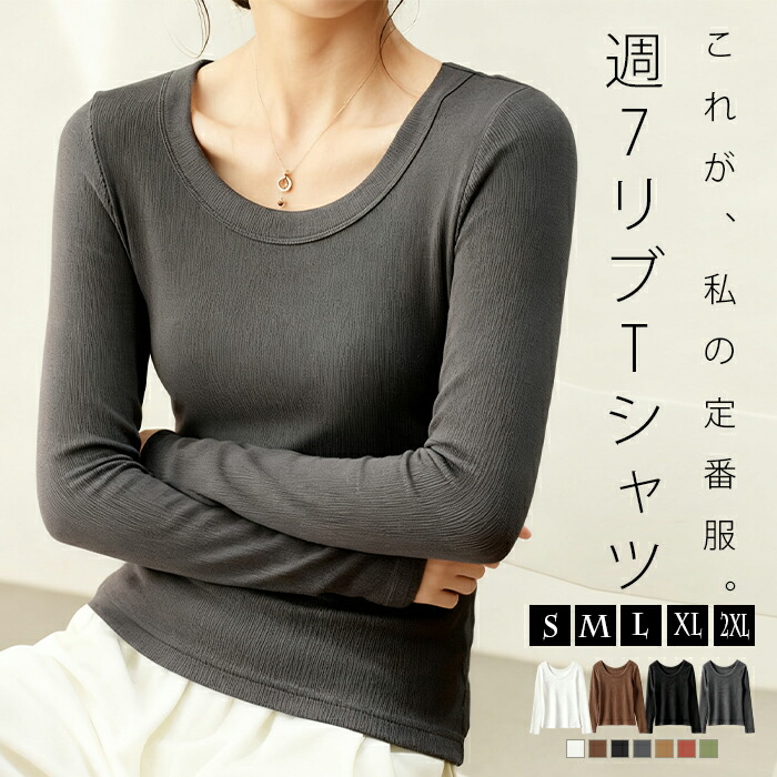 リブ ブラウス レディース シャツ 長袖 カットソー 深め Tシャツ Uネック ルームウェア 大きいサイズ インナー 体型カバー トップス ベーシック 大人 きれいめ 肌着 綿素材 伸縮性 リ 重ね着