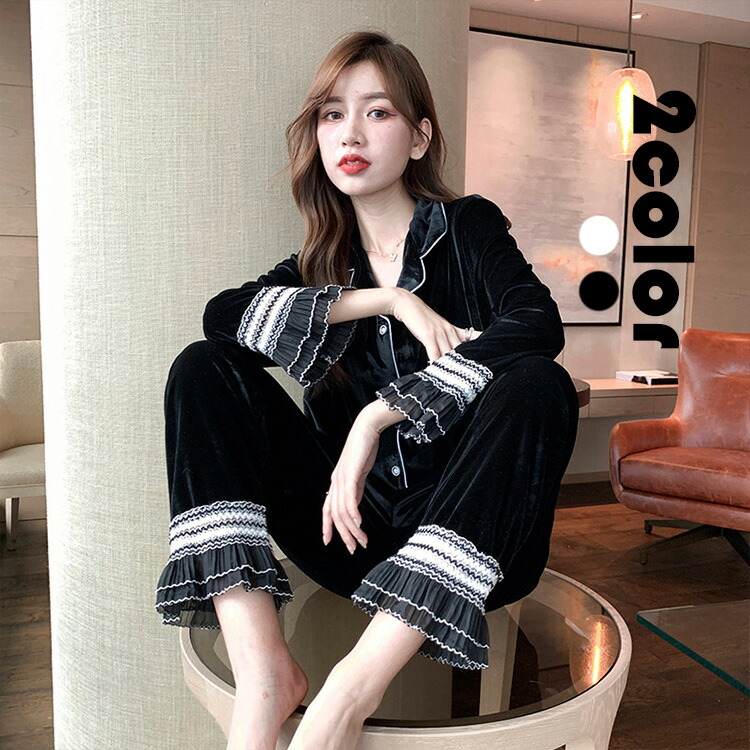 パジャマ レディース 秋冬 姫系 オシャレ きれいめ 長袖 長ズボン ルームウェア 上下セット 寝巻き 部屋着 セットアップ 防寒 ゆったり 上品