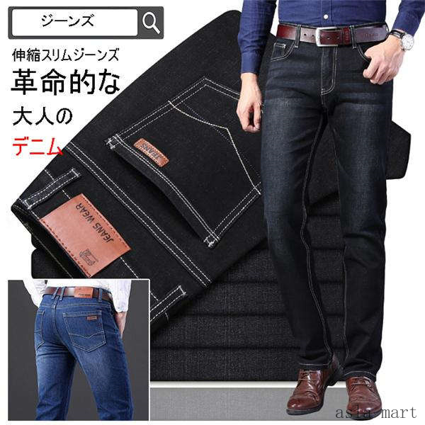 ジーンズ メンズ デニムパンツ デニム ストレート ストレッチ ジーパン 黒デニム パンツ スリム 春夏秋 おしゃれ
