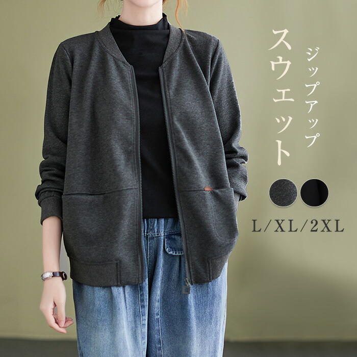 スウェット カーディガン ジャケット レディース トップス トレーナー 着痩せ 前開き ジップ ポケット 重ね着 30代 40代 50代