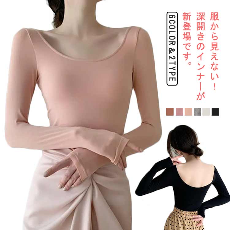 インナー 深開き あったか バレエネック バックオープン 肩開き 背中あき 襟ぐり広め 服から見えない 無地 シンプル 薄手 肌着 長袖 トップス チラ見え防止 お洒落 防寒