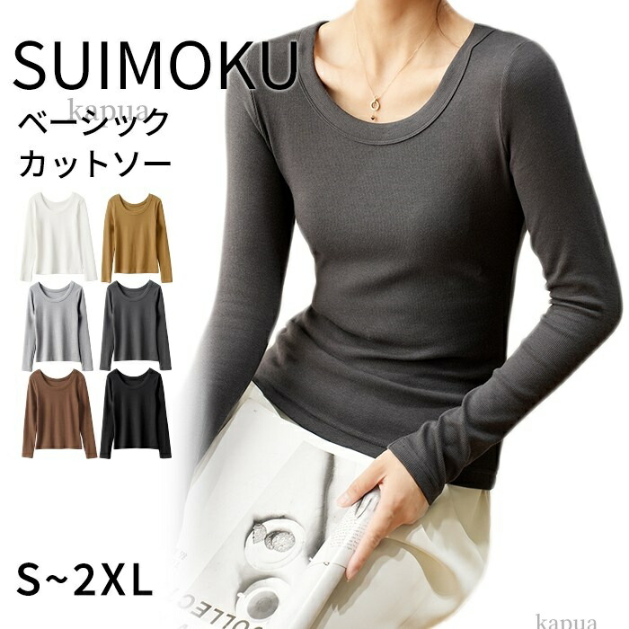 uネック tシャツ 深め レディース 長袖 カジュアル ロンT カットソー 秋冬 冬 きれいめ ルームウエア オシャレ 無地 女性用 肌着 重ね着 綿 大きいサイズ ブラック ホワイト キャラ 着回し
