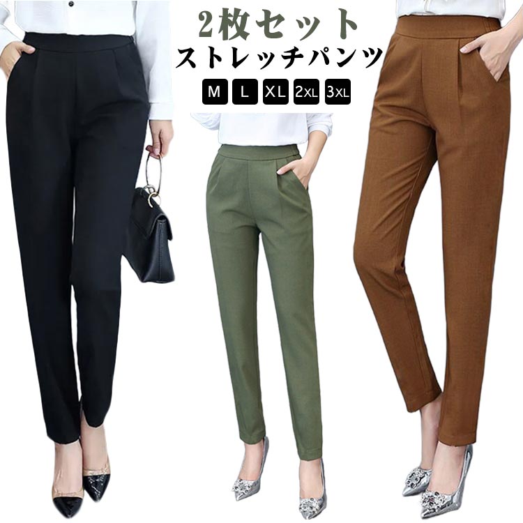 2枚セット ストレッチパンツ レディース ロング スラックス テーパードパンツ