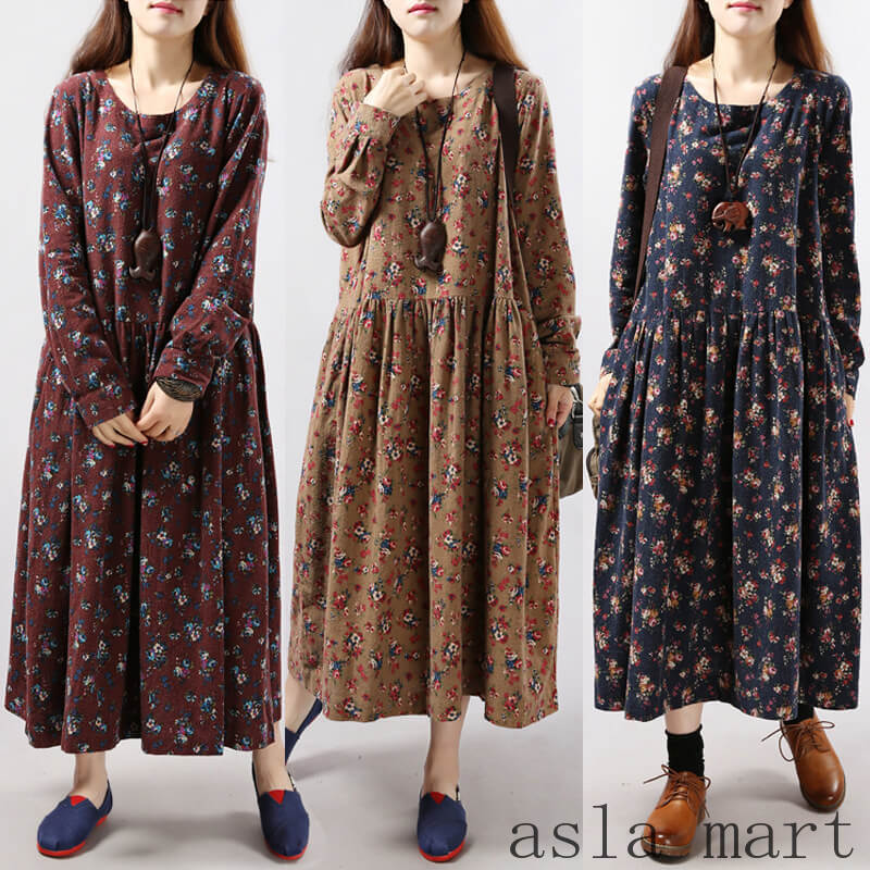ワンピース レディース ロングワンピース リネンワンピース リゾート コットン リネン 綿麻 花柄 ロング マキシ丈 プリーツ きれいめ Aライン フレア 麻 長袖 大人 上品 森ガール 大きいサイズ