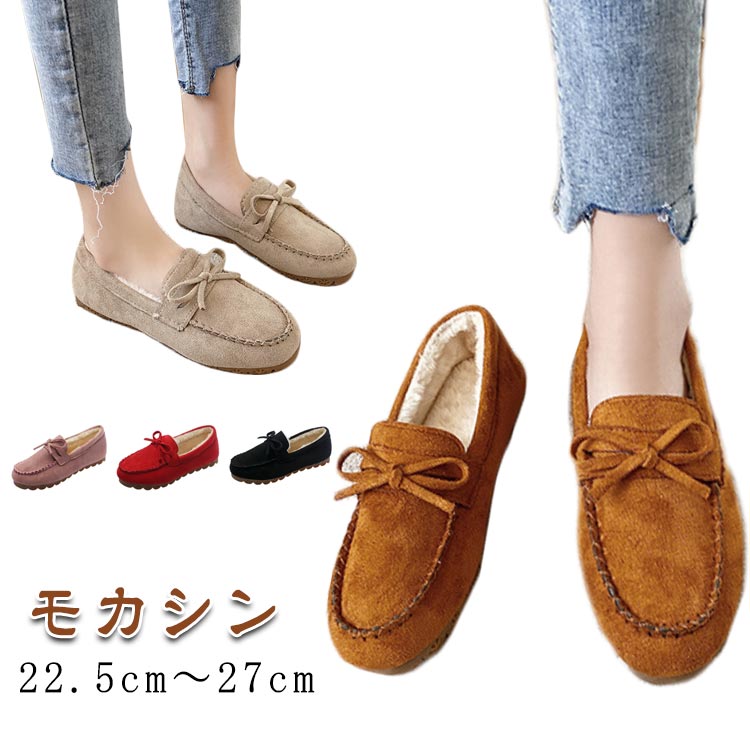 モカシン レディース ムートン カジュアルシューズ 裏起毛 リボン モカシンシューズ フラット 防寒 痛くない 歩きやすい あったか やわらかい 雪 大きいサイズ 小さいサイズ 内ボア 秋 冬 ファー