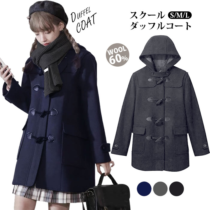 送料無料 防風効果優れなダッフルコート 学生定番冬のコート 秋冬春向け ダッフルコート 学生 女子 通学 通勤にも 暖かい 防寒 防風 ブレゾーコーデ ジュニア ネイビー/グレー/黒