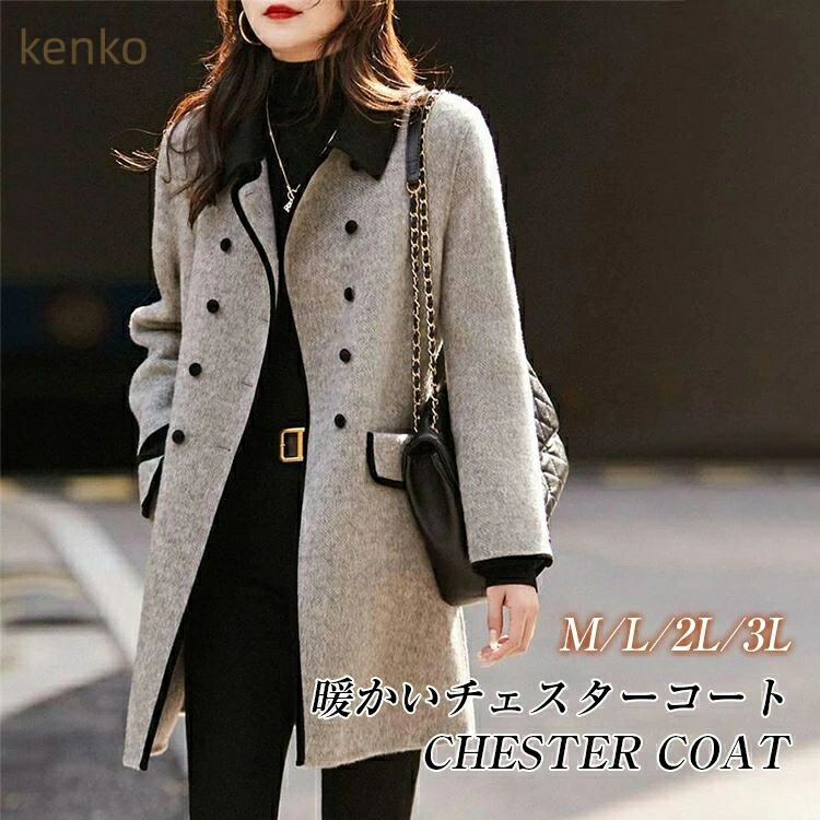 カシミヤ チェスターコート レディース 秋冬 ショートコート チェスター コート アウター 羽織 ミドル丈コート 防寒 暖かい 大きいサイズ 上品 シンプル カジュアル 無地 通勤