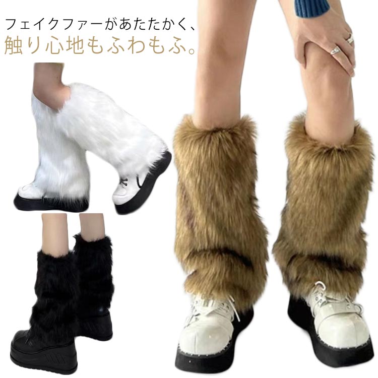 レッグウォーマー ファー 足首ウォーマー ふわふわ 暖かい もこもこ 防寒 冷え対策 靴下 ルーズソックス 美脚 レディース フェイクファー レッグカバー 女性 サブカル系 渋谷 原宿 ギャル Y2K