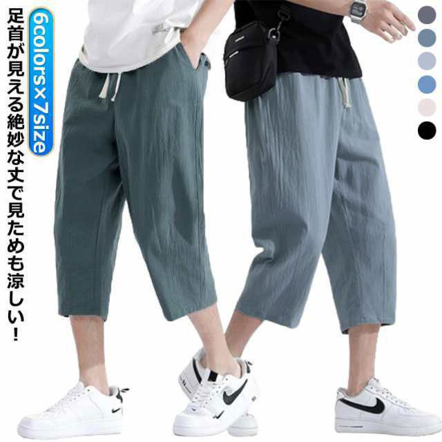 サルエルパンツ メンズ 夏 麻 冷感 黒 大きいサイズ リネンパンツ 麻パンツ ゆったり コットンリネン ウエストゴム 七分丈パンツ 涼しい クロップドパンツ 紐付き 春夏 ゆっ 長ズボン