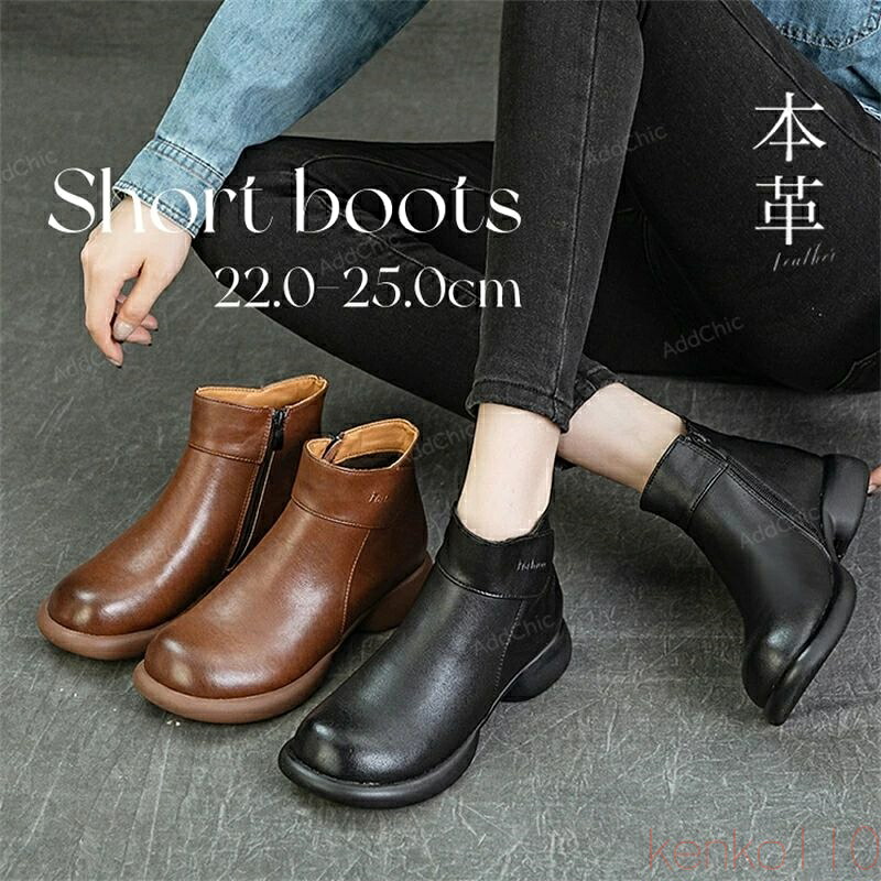 本革 牛革 ショートブーツ シューズ 靴 くつ 履物 ショート丈 レディース 秋 冬 美脚 疲れない 歩きやすい 足が痛くならない 厚底 太ヒール 通勤 秋冬 3.5c 通学