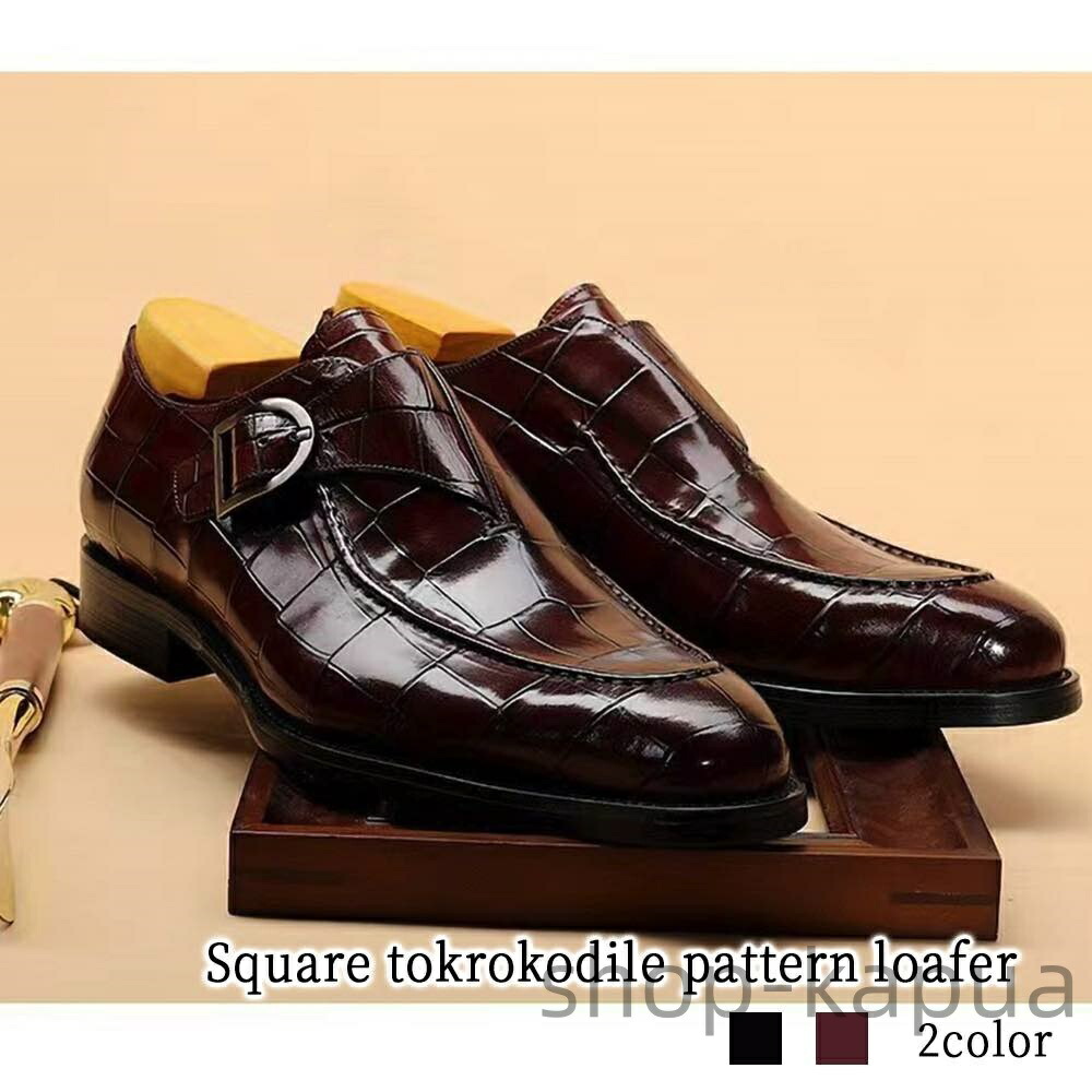【送料無料】ビジネスシューズ メンズ スクエアトゥクロコダイル