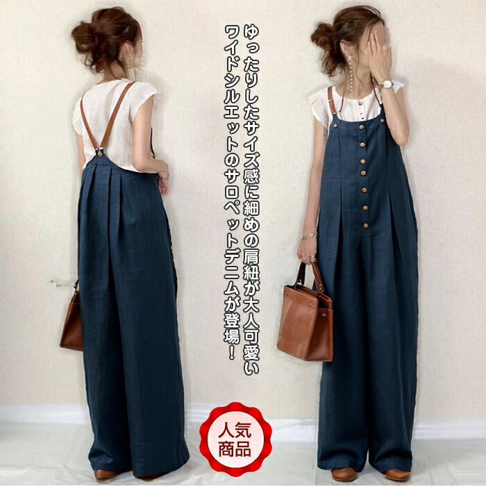オールインワン レディース サロペット ロングパンツ オーバーオール サロペットパンツ ワイドパンツ ズボン サスペンダー パンツ ガウチョパンツ ジャンパーズボン つり カジュアル マキシ ボタン