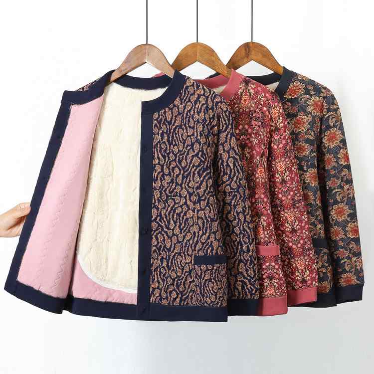 中綿ジャケット レディース ミセス 婦人 裏起毛 保温 防寒 前開き 小花柄 カーディガン 秋冬 普段使い 重ね着 快適 カジュアル ゆったり 暖かい