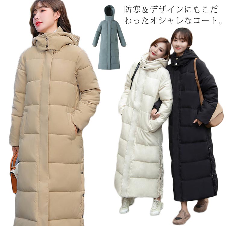 防寒 中綿コート レディース 中綿ジャケット ロング丈 ハイネック フード付き 防寒&デザインにもこだわったオシャレなコート