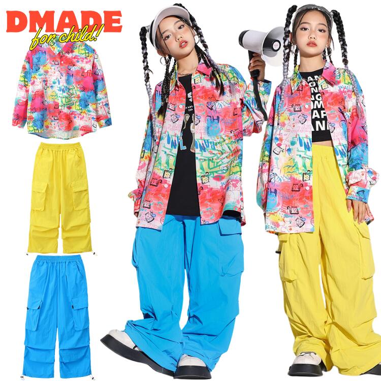 キッズダンス衣装 ヒップホップ ジャケット シャツ カーゴパンツ セットアップ 長袖 女の子 男の子 原宿系 演出服 ダンスウェア 団体服 ジャズ ダンス 韓国 イエロー ブル jazz