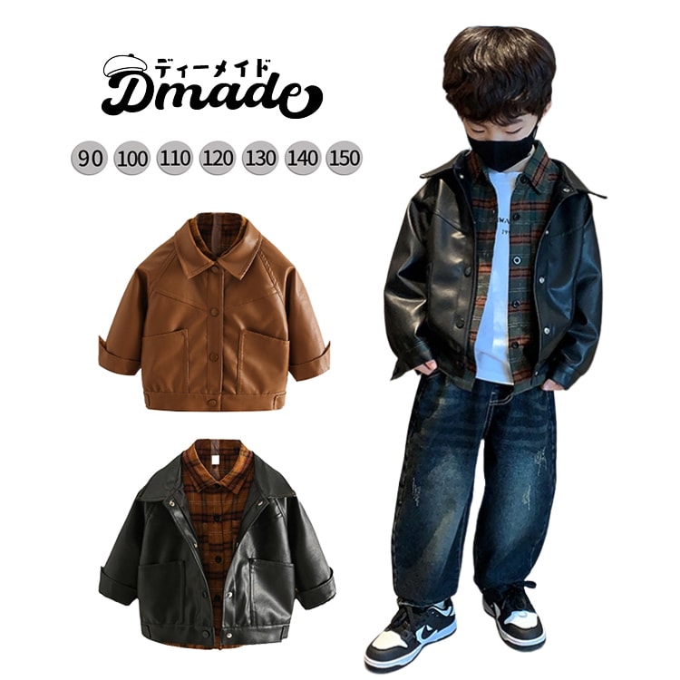 キッズ レザージャケット ブラウン 黒 子供服 秋 男の子 革ジャン レザーコート 個性 ライダースジャケット 革コート ボーイズ おしゃれ 子ども服