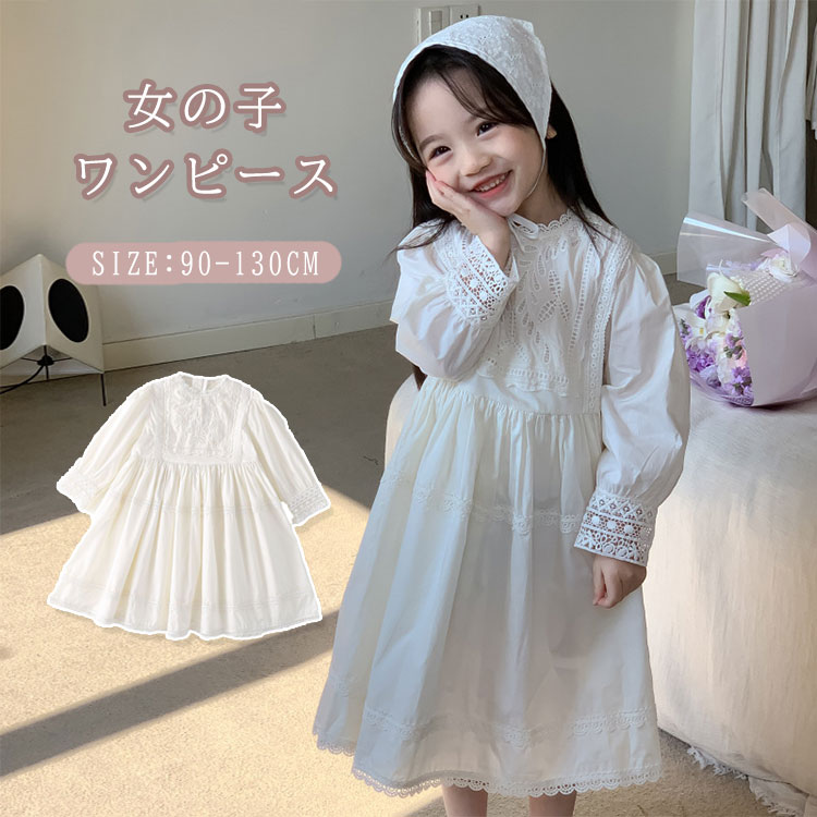 女の子 レース ワンピース 子供 白ワンピ ドレス 春秋 ピアノ 発表会 七五三 長袖 フリル キッズ服 子供服 子ども 可愛い オシャレ 入学式 卒園式 入園式 結婚式 卒業式