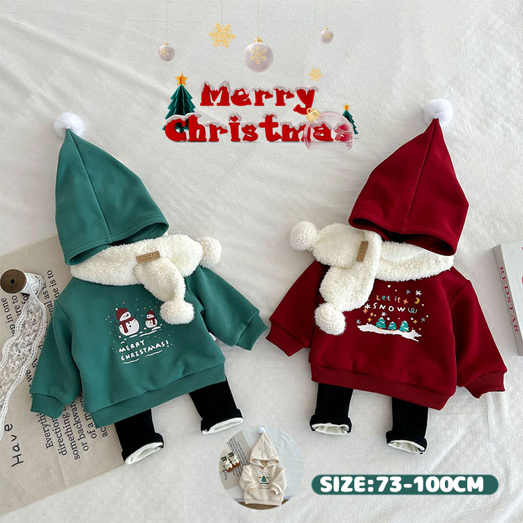 ベビー パーカー 子供服 クリスマス 衣装 トップス 女の子 男の子 サンタ風 サンタさん コスプレ キッズ トナカイ フード付き トレーナー 裏起毛 パーティー 出産祝い お出かけ 新生児 イベント