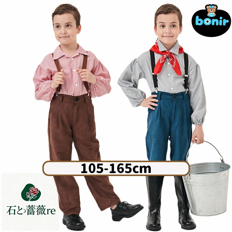 レトロコーデ ヨーロッパ風 男の子 ハロウィン衣装 パーティー服 トップス サロペット レッド ブラウン 欧米風 農場 農場作業員 cos クラシック 長袖シャツ おしゃれ 劇用 テー ヴィンテージ風